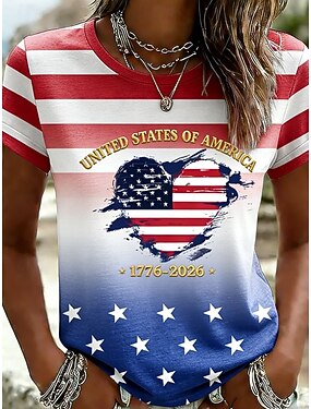 T-shirt pour femme patriote américaine pour le Jour de l'Indépendance Anniversaire Impression Graphique Drapeau Lettre Élégant Classique Décontracté Manches Courtes Col Ronde Hauts Quotidien Bleu