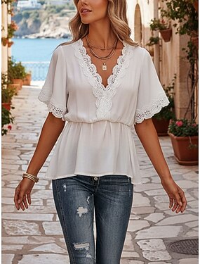 Chemise Chemise en dentelle Chemisier Chemise en dentelle blanche Femme Noir Blanche Plein Dentelle Tunique fluide Plein Air du quotidien Mode Col V Standard S