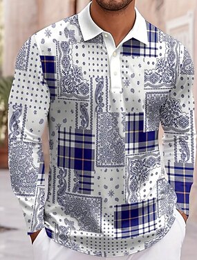 Homme Bloc de Couleur Géométrique Polo manche longue Polos Revers Occasionnel Extérieur Rue Athleisure Tenue quotidienne Impression 3D Boutons Printemps Automne Hiver Bleu Bleu Ciel Gris