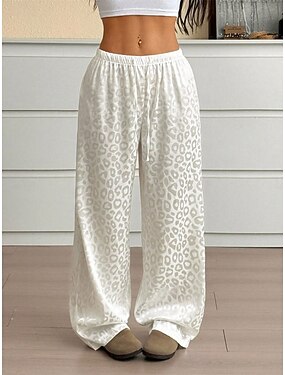 Femmes Culottes Jambe Large Chinos Droit Élégant Vacances ancien Longueur complète Taille moyenne Couleur Unie Léopard Patchwork Ceinture Élastique Impression Confortable Respirant Élastique