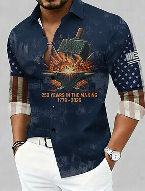 250ème anniversaire de l'Amérique T-shirt graphique pour hommes Drapeau Américain Chemise à bouton Chemise hawaïenne Manche longue Vintage Décontracté Plage Vacances Été Printemps Rabattable
