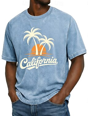 Homme Cocotier T-shirt T-shirt à lavage minéral Manche Courte T-shirt Lavage à l'acide Col ras du cou Chemise Vintage Rétro Occasionnel Plage Voyage Bleu Violet Gris Été Printemps Vêtement Tenue M L
