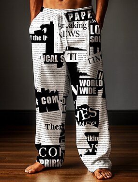 Homme Pantalons Pantalons Amples Pantalon décontracté Taille élastique avec cordon de serrage Pantalon en lin avec poches Journal impression de lettre Longueur complète Extérieur Fête Rétro Vintage