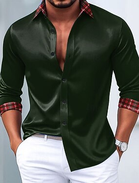 Homme Géométrique Grille / Carreaux Chemise Chemise en satin Chemise habillée manche longue Vintage Rétro Vacances Tenue Quotidienne Été Printemps Automne Col Rabattu Impression 3D Chemises boutonnées