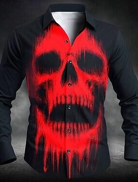 Chemise à motifs crâne pour hommes Chemise à boutons Manches longues Style gothique punk sombre Extérieur vacances Printemps d'été Chemise à col à impressions 3D Blanche Rouge Bleue Verte Bleue clair