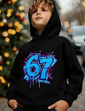 Unisexe 3D Graphique Football Argot drôle 67 Sweat à Capuche Pull manche longue Impression 3D Printemps Automne Sports Mode Streetwear Enfants 4-12 ans À capuche Occasionnel Quotidien Extérieur Coupe