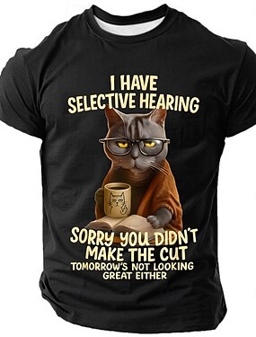 T-shirt graphique pour hommes Citation sarcastique de chat drôle 'Ouïe sélective' à manches courtes. Idéal pour l'humour de style de vie et d'attitude.