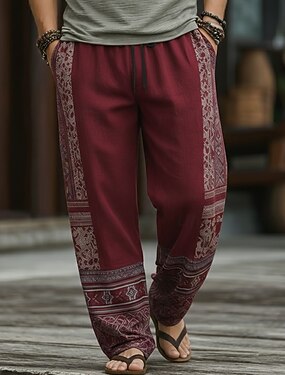 Homme Géométrique Ethnique Art abstrait Pantalons Pantalons Amples Pantalon décontracté Taille Moyenne Boho Vintage Rétro Maison Extérieur Vacances Taille élastique avec cordon de serrage Pantalon en