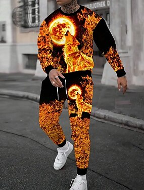 Homme Loup 2 pièces Ensembles de sweat-shirts 3D Survêtement Sweatshirt Pull manche longue Pantalon long Col ras du cou Décontracté Quotidien Tendance Athleisure Vêtements de rue Impression 3D