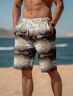 Homme Aztèque Formes Géométriques Ethnique Shorts Shorts d'été Shorts de plage Taille Moyenne Streetwear Hawaïen Occasionnel Quotidien Fête Cordon de serrage Avec Poches Taille Élastique Designer