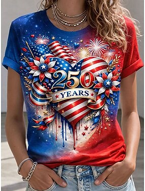 T-shirt patriote femme pour le Jour de l'Indépendance 250e anniversaire américain graphique papier lettre drapeau stylisé classique et décontracté manches courtes col rond tops réguliers impressions