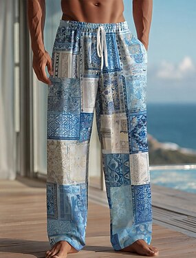 Homme Bohème Bloc de Couleur Patchwork Pantalons Pantalons Amples Taille Moyenne Ethnique Vintage Rétro Maison Extérieur Vacances Cordon de serrage Taille Élastique in in france they say Pontalon