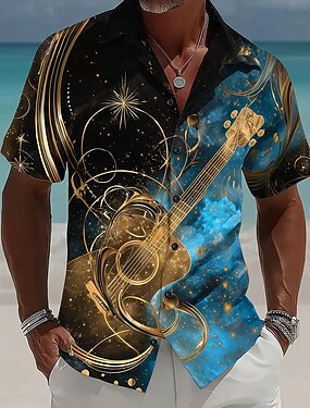 Homme Dégradé de Couleur Guitare Instrument de musique Chemise Chemise d'été Chemise Boutonnée Manche Courte Vintage Rétro Extérieur Festival de Musique Vacances à la Plage Été Printemps Col Rabattu