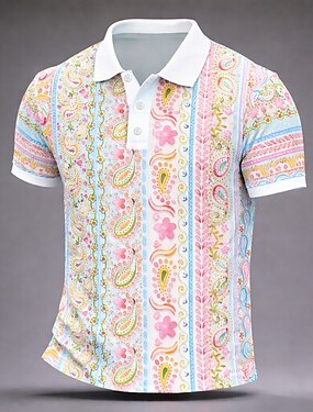 Homme Paisley Polo Manche Courte Polos Chemises à Col Occasionnel Athleisure Vêtements d'Extérieur Tenue quotidienne Impression 3D Boutons Printemps & Été Bleu Violet Vert