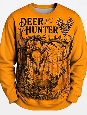 Homme Cerf Sweatshirt 3D Chasse manche longue Col ras du cou Extérieur Sport en Plein Air Orange Col rond Impression 3D Hiver Printemps & Automne Designer S M L XL XXL XXXL