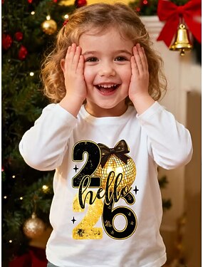 T-shirt à manches longues pour filles, idéal pour la fête du Nouvel An 2026. Imprimé 3D, style streetwear, col rond, coupe classique. Parfait pour le printemps et l'automne. Col rond. Coupe