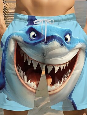 Homme Requin Visage Souriant animaux de dessin animé Maillots de bain Maillots de bain shorts de bain Shorts de Surf Taille Moyenne Drôle Vacances à la Plage Poches Latérales doublure en maille