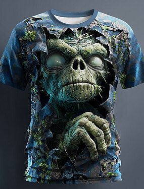 Homme Illusion d'optique Zombies 3D T-shirt Manche Courte T-shirt Impression 3D Col ras du cou Chemise Exagéré Designer Horreur Soirée Rue Fête Bleu de minuit Été Printemps Toutes saisons Vêtement
