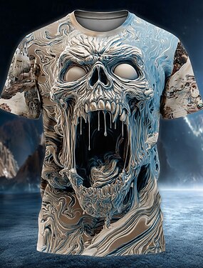 Homme Crâne T-shirt Manche Courte T-shirt Impression 3D Col ras du cou Chemise Exagéré Designer Horreur Soirée Rue Club Bleu Violet Orange Été Printemps Toutes saisons Vêtement Tenue S M L XL XXL XXXL