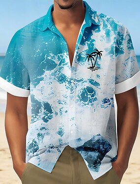 Homme Cocotier Océan Plantes Tropicales Chemise hawaïenne Chemise Boutonnée Chemise Aloha Manche Courte Hawaïen Vacances Fête Tenue de plage Été Printemps Col Rabattu Impression 3D Chemise en lin