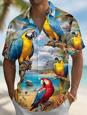 Homme Oiseau Perroquet Plantes Tropicales Chemise hawaïenne Chemise Boutonnée Chemise Aloha Manche Courte Drôle Vacances Tenue de plage Été Printemps Col Rabattu Impression 3D chemises à col Bleu