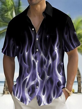 Homme Dégradé Vagues Flamme Chemise Chemise d'été Chemise Boutonnée Manche Courte Mode Décontractée Extérieur Vacances Tenue Quotidienne Été Printemps Col Rabattu Impression 3D chemises à col Une