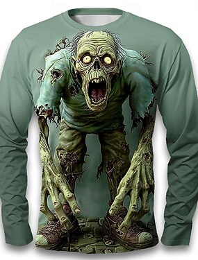 Homme Zombies 3D T-shirt manche longue T-shirt Impression 3D Col ras du cou Chemise Mode Exagéré Rue Occasionnel Quotidien Vert 1 # Vert 2# Vert 3# Été Printemps Automne Vêtement Tenue S M L XL XXL
