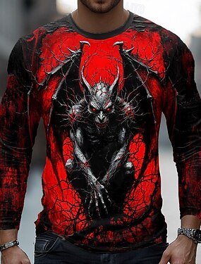 Homme Vampire T-shirt manche longue T-shirt Impression 3D Col ras du cou Chemise Mode Exagéré Rue Occasionnel Quotidien Rouge Bleu Violet Été Printemps Automne Vêtement Tenue S M L XL XXL XXXL