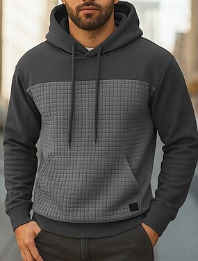 Homme Sweat à capuche Sweat à capuche gaufré Noir Vert Véronèse bleu marine Kaki Gris Clair À capuche Uni Patchwork Bloc de Couleur Texturé Sport & Loisir Occasionnel Quotidien Streetwear Frais
