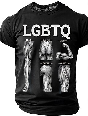 T-shirt graphique à manches courtes et col rond, orné d'un jeu de mots amusant sur le fitness, les jambes, les fessiers, les biceps, les triceps et les quadriceps, idéal pour les hommes souhaitant se