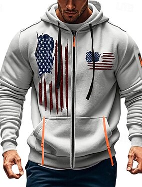 Homme Sweat à capuche Sweat à capuche zippé intégral Sweat à capuche zippé Bleu Noir Kaki Gris foncé Gris À capuche Drapeau Américain Zip Up Avec Poches Occasionnel Quotidien Sport & Loisir