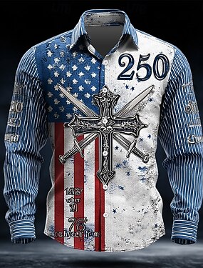 Homme 4 juillet, 250e anniversaire des États-Unis Croix Drapeau américain Chemise Chemise Boutonnée manche longue Vintage Rétro Fête Décontracté Quotidien Printemps Automne Col Rabattu Impression 3D