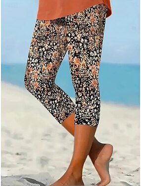 Femmes Chinos Leggings Pantacourt Vacances ancien Streetwear Capris Taille haute Fleuri Graphique Impression Confort Doux Confortable Haute Élasticité Quotidien Extérieur Vacances Blanche Ét