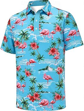 Derby du Kentucky Homme Fleuri Oiseau Polo Manche Courte Polos Chemises à Col Occasionnel Extérieur Tenue quotidienne Tenue de fête Impression 3D Été Printemps Automne Bleu Ciel Vert Bleu de minuit