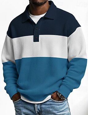 Homme Dégradé Géométrique Polo manche longue Col montant Occasionnel Athleisure Vacances Athleisure Décontracté Quotidien Impression 3D Printemps Automne Bleu Vert bleu marine