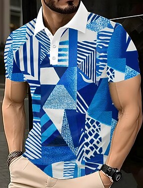 Homme Géométrique Golf Polos de Sport Manche Courte Polos Revers Occasionnel Athleisure Impression 3D Boutons Été Bleu Violet Vert