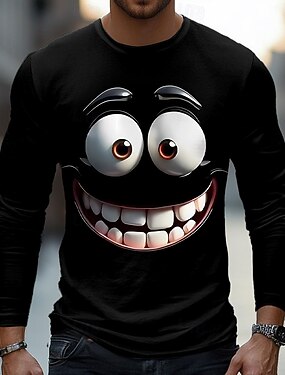 Homme 3D Émoticônes amusantes T-shirt manche longue T-shirt Impression 3D Col ras du cou Chemise Mode Exagéré Rue Quotidien Noir Bleu Orange Été Printemps Automne Vêtement Tenue S M L XL XXL XXXL