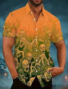 Homme Bière Déguisement Halloween Crânes Chemise Chemise Boutonnée Chemise de créateur Manche Courte Punk gothique sombre Fête Vêtements de rue Été Printemps Col Rabattu Impression 3D chemises à col
