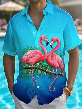 Homme Animal Flamant rose Feuille de palmier Chemise hawaïenne Chemise Boutonnée Chemise Aloha Manche Courte Hawaïen Vacances Tenue de plage Été Printemps Col Rabattu Impression 3D chemises à col