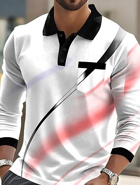 Homme Géométrique Ligne Polo manche longue Polos Revers Vêtement décontracté de travaile Athleisure Tenue quotidienne Avec Poches Impression 3D Boutons Printemps Automne Noir Rouge Bleu