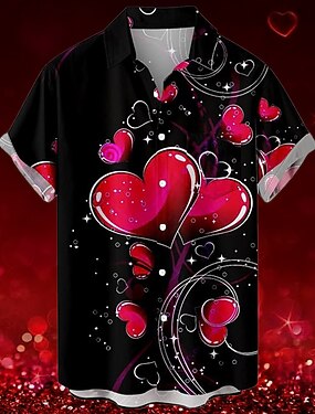 Saint Valentin coeur romantique complexe pour hommes hawaïen chemise imprimée en 3D boutonné à manches courtes été vacances à la plage vêtements quotidiens s à 3xl
