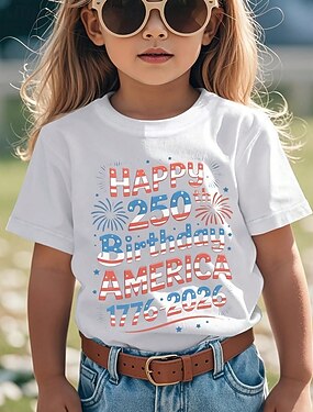 100% Coton Enfants Fille Noir Blanche Graphique 250e anniversaire Drapeau américain pour enfant T-shirt Col Rond Manche Courte Vacances Sport & Loisir Tenue Quotidienne Occasionnel Impression Été
