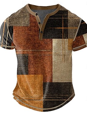 Homme Plaid Patchwork Chemise Henley T-shirt gaufré Manche Courte Quotidien Rétro Vintage Classique Sport en Plein Air Occasionnel Fête Printemps & Été Toutes saisons Marron Sapin Gris foncé Bleu