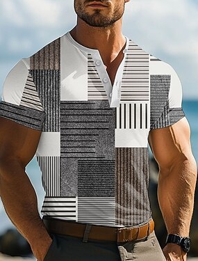 Homme Modèle de patchwork T-shirt Chemise Henley Manche Courte Designer Rétro Vintage Occasionnel Occasionnel Quotidien Rue Été Printemps bleu marine Vert Citron Kaki Gris Henley T-shirt Henley