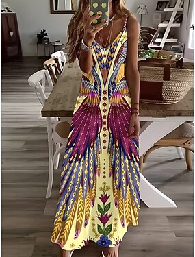 Femmes Robe maxi Robe d'Été Robe trapèze Robe Nuisette Vacances Occasionnel Plage Sortir Coupe régulière Graphique Paisley Tribal Sans manches Col en V Noir Été Printemps