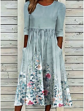 Femmes Robe maxi Robe Ensemble Robe trapèze Vacances Occasionnel Boho Coupe régulière Fleuri Graphique Manche 3/4 Col en V Bleu Rose Claire Vert Été Printemps Automne Hiver