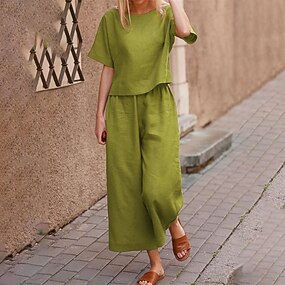 Femmes T-shirt Faux coton lin Manche Courte Col ras du cou Couleur Unie Taille Élastique Basique Mode Simple Confort Maison Saint-Patrick Rue Bleu Noir Vert Claire Été