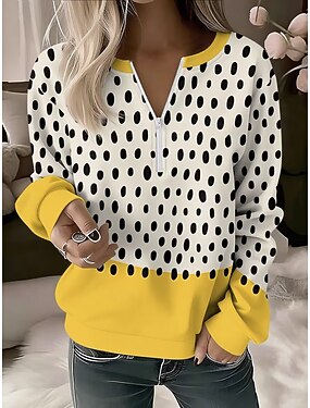 Femmes Sweatshirt Pull Sweats zippés Fermeture éclair Imprimé Graphique Géométrique À pois Mode Occasionnel manche longue Col ras du cou Hauts Réguliers Rue Tenue Quotidienne Jaune Automne Hiver