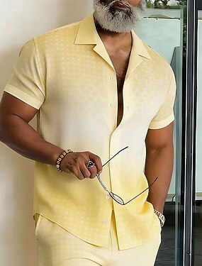 Homme Géométrique Grille / Carreaux Dégradé de Couleur Chemise Chemise Boutonnée Chemise à col camp Manche Courte Mode Décontractée Vêtements de rue Vacances Été Printemps Col cubain Impression 3D