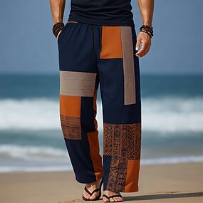 Homme Pantalons en Lin Pantalon d'été Cordon de serrage Taille Élastique Jambe Droite Uni Confort Respirant Longueur complète Occasionnel Quotidien Plage Vacances Mode Bleu Noir Non Elastique